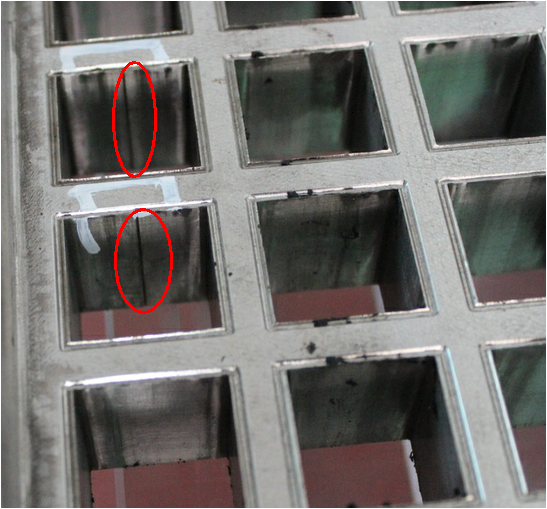 模具在機(jī)械加工線切割過程中由于加工超差出現(xiàn)的缺陷,這時的缺陷不能用氬焊來焊補(bǔ),因為焊補(bǔ)后有咬邊和退火等問題。激光焊無法在折彎的地方焊補(bǔ),這時只能用宏犇精密補(bǔ)焊機(jī)來焊補(bǔ)了。如圖:
