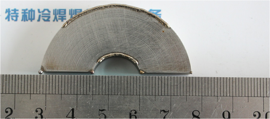 模具最主要的磨損就是在于邊角的磨損,其硬度也是比較高的,這時的焊補(bǔ)要求也相對較高。如下是圓形樣件用宏犇精密補(bǔ)焊機(jī)焊補(bǔ)的效果。其最小的焊點(diǎn)在0.6毫米,其最窄的焊邊在1mm左右。而且沒有咬邊現(xiàn)象。